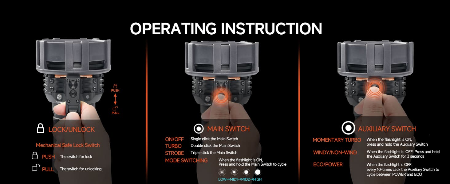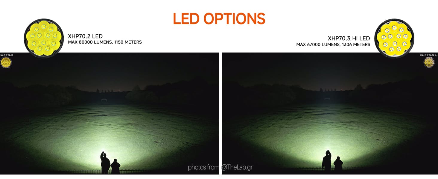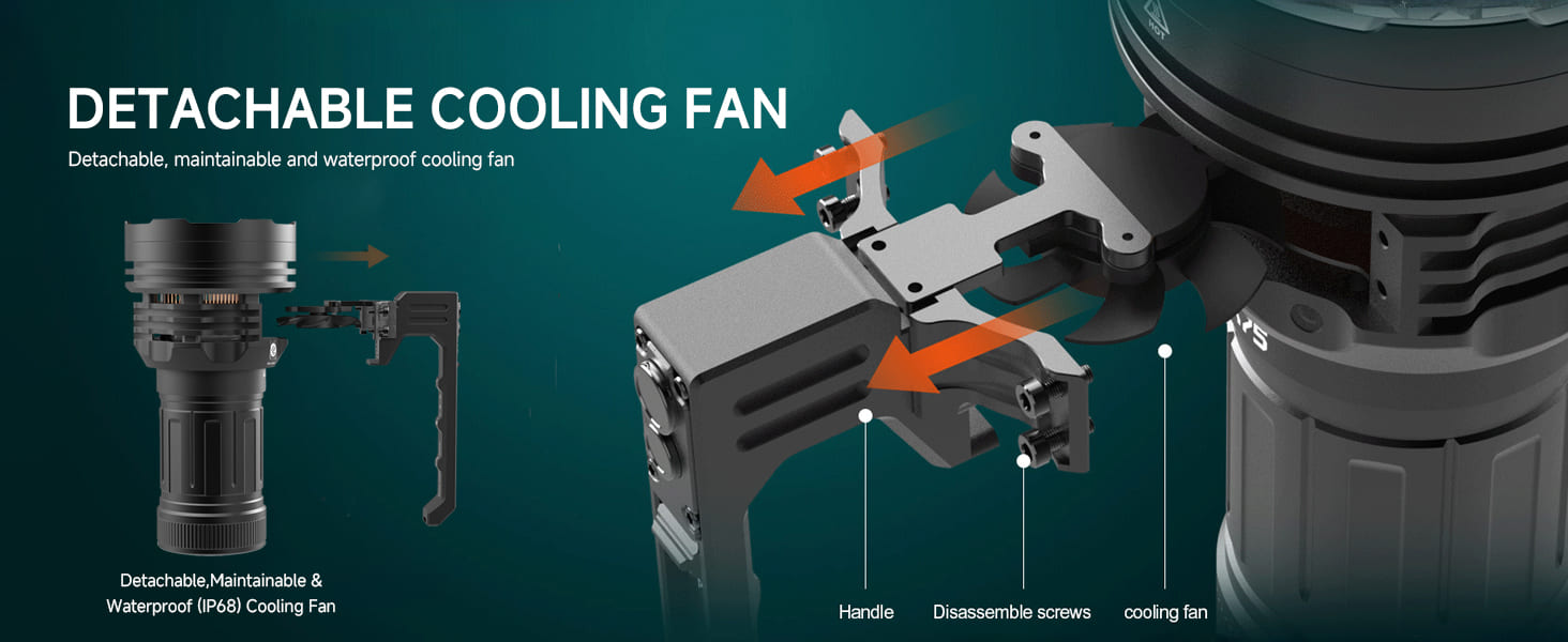 مصباح يدوي عالي الطاقة بقوة 80,000 لومن، مزود بمنفذ USB-C للشحن السريع، يشحن بالكامل خلال 1.5 ساعة، مزود بمصابيح LED من نوع CREE XHP70.2، مزود بمروحة تبريد قابلة للفصل، مصباح كشاف محمول باليد